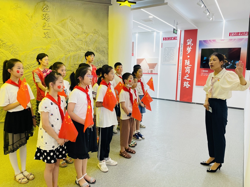 為落實(shí)滁州市關(guān)于開展2022年暑期社區(qū)未成年人思想道德建設(shè)工作有關(guān)要求,深入推進(jìn)“我為群眾辦實(shí)事”實(shí)踐活動,7月18日下午,市礦投集團(tuán)聯(lián)合永樂社區(qū)組織青少年打卡龍?bào)唇值蓝笉徤鐓^(qū)黨性教育館,深入開展黨史學(xué)習(xí)教育。