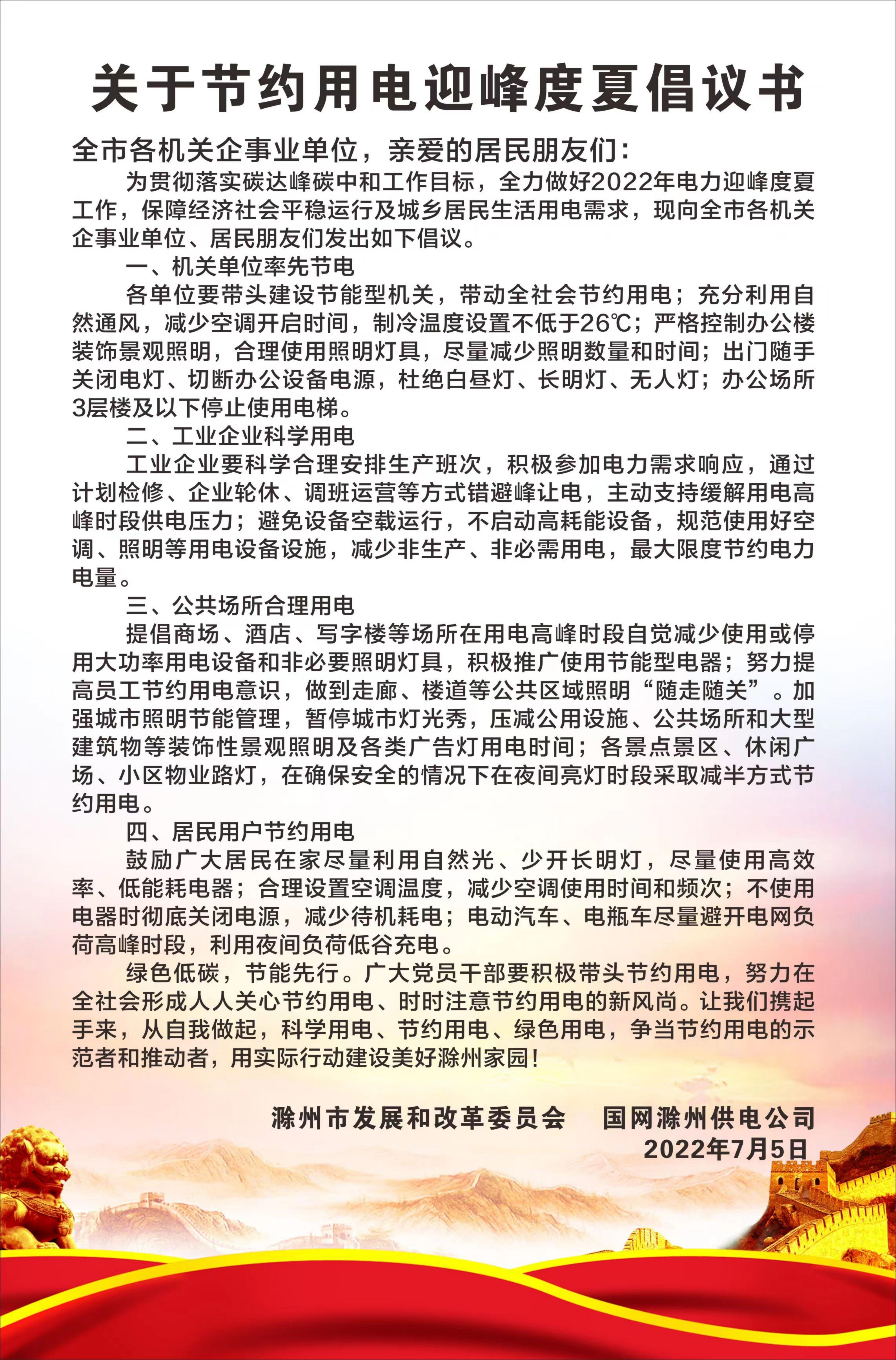 關(guān)于節(jié)約用電迎峰度夏倡議書
