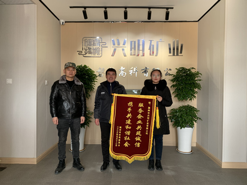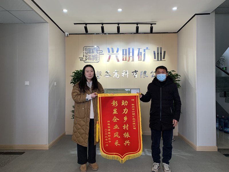 1月17日,澗溪鎮(zhèn)姚郭村、蒲塘村、九塘村村委會負責人將三面錦旗送至滁州市興明礦業(yè)有限公司,感謝興明礦業(yè)在鄉(xiāng)村振興、村企聯(lián)建、助農(nóng)扶貧等方面做出的貢獻。