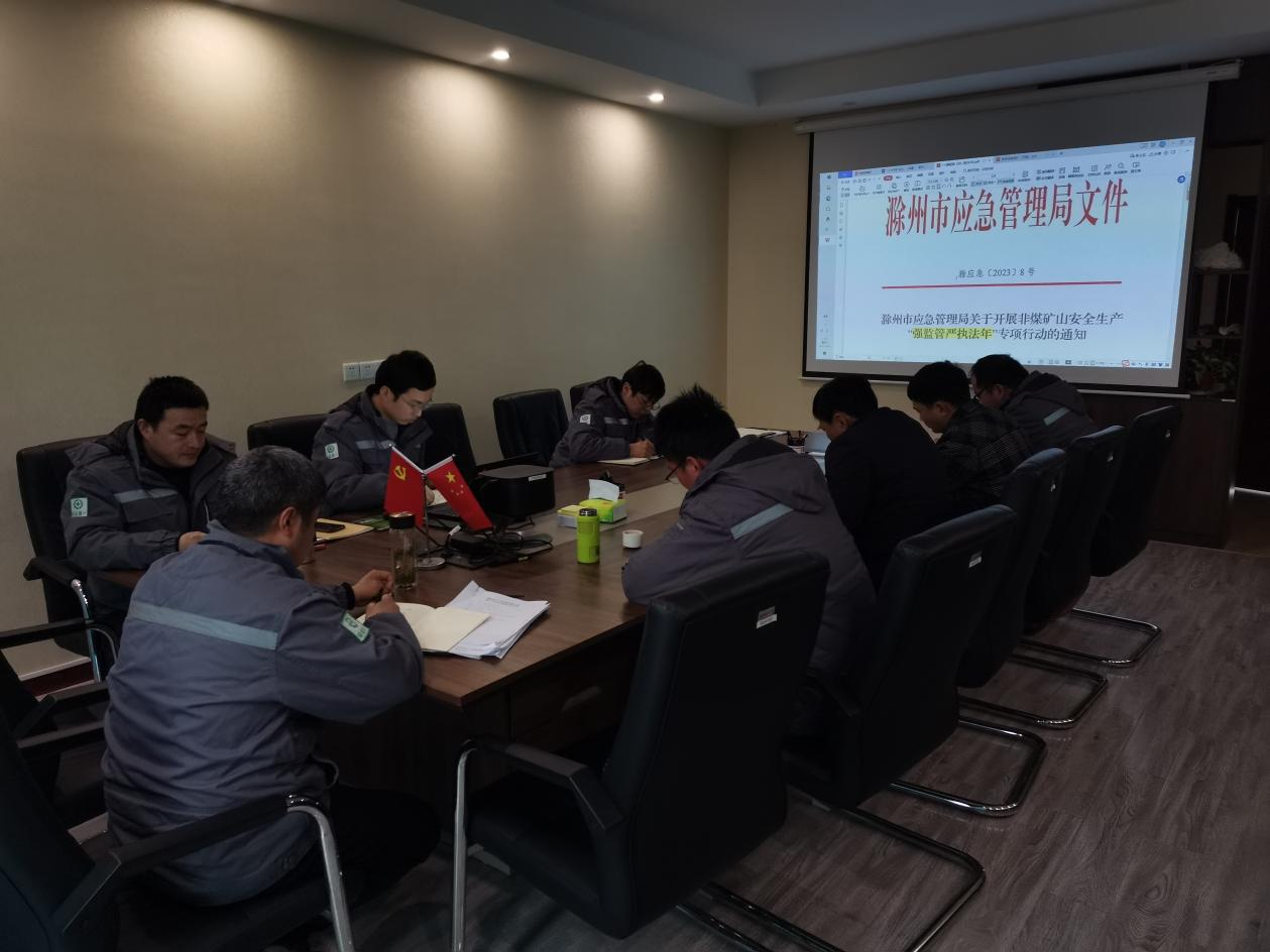會議傳達(dá)學(xué)習(xí)了滁州市應(yīng)急管理局關(guān)于開展非煤礦山安全生產(chǎn)“強(qiáng)監(jiān)管嚴(yán)執(zhí)法年”專項(xiàng)行動相關(guān)要求,研究《滁州市興天礦業(yè)有限公司安徽省天長市諭興地區(qū)建筑用玄武巖礦生產(chǎn)安全事故應(yīng)急預(yù)案》(討論稿)。各單位、部門就近期安全生產(chǎn)工作提出意見和建議,安委會對近期安全生產(chǎn)工作進(jìn)行部署。